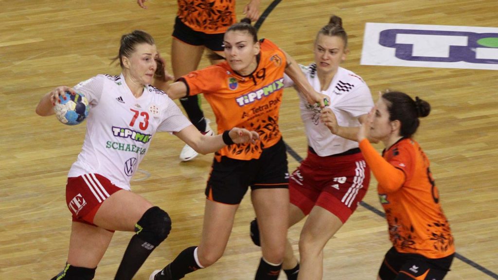 Mindkét oldalon sok volt a hiba a meccs elején, már a harmadik percben jártunk, amikor Karina Jezsikava megszerezte a meccs és a Loki első gólját. Még egy kihagyott hetes is belefért, Mariana Costa, Hornyák Dóra és Kovács Anna góljaival így is nőtt a különbség, így a 9. percben, 0–4-nél időt kért a hazaiak mestere. Jól védekeztünk, Csapó Kyra magabiztos volt a kapuban, így az optimálisnál magasabb hibaszázalék ellenére is magabiztosan vezettünk harminc perc után (12–17).